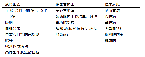 第一步,根据表1,判断个体是否具有心脑血管病危险因素以及危险因素的数量,是否有脏器损害情况,是否有合并症和并发症。